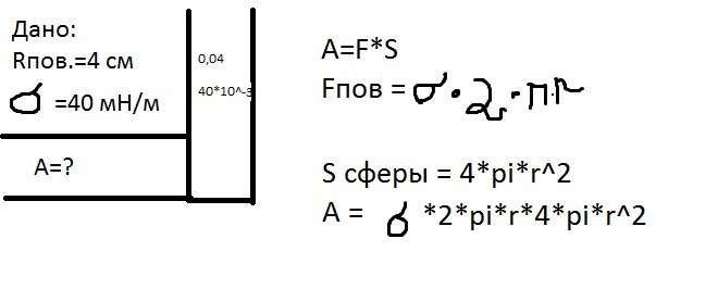 Что я сделала не правильно? Задача: Какую работу надо совершить, чтобы выдуть мыльный пузырь радиусом 4 см? Коэффициент пов. натяжения мыльного раствора равен 40 мН/м