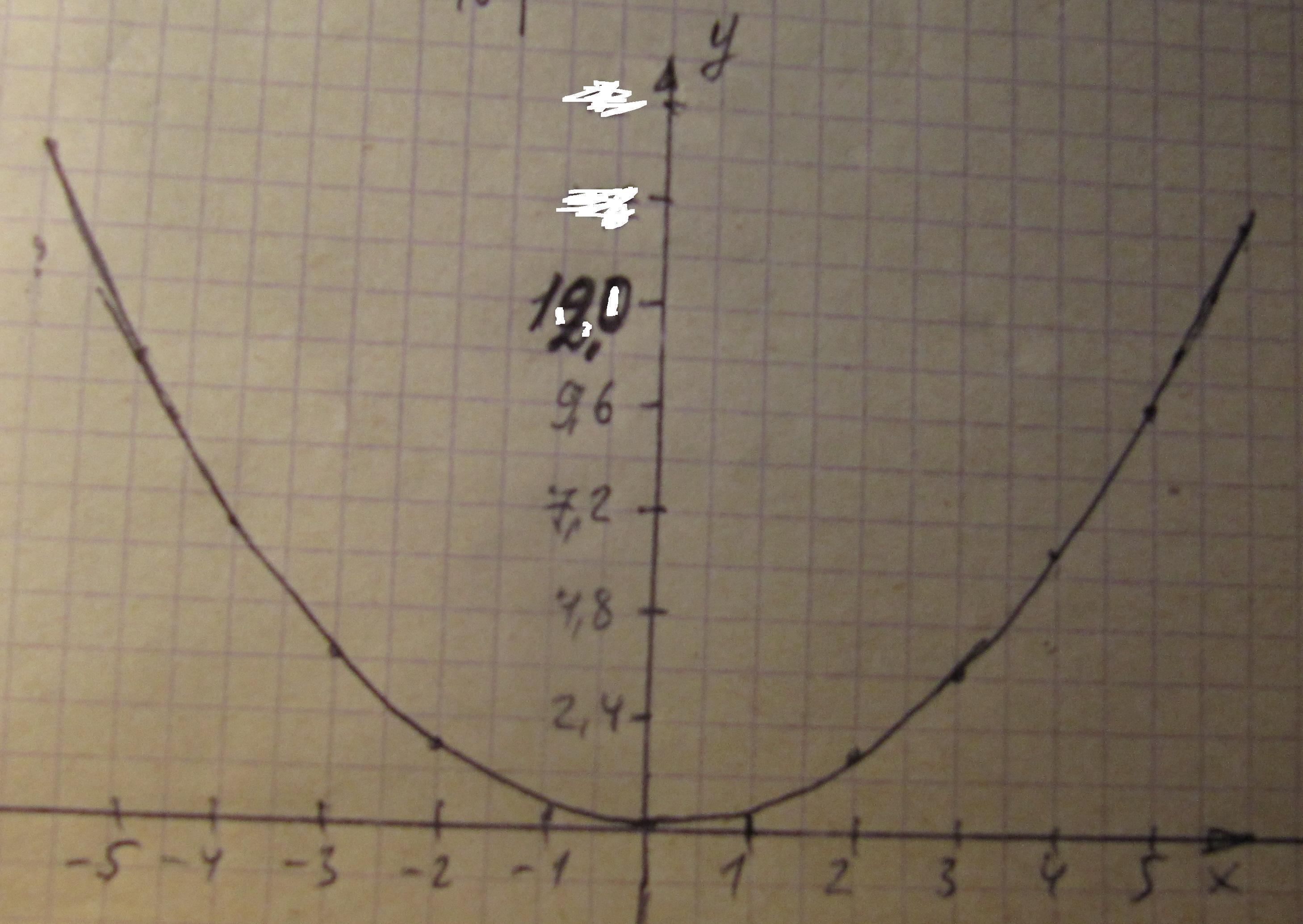 График представляет собой параболу, ветви которой направлены вверх. Вершина параболы хв=0, yв=0,4*0=0. Характерные точки:
