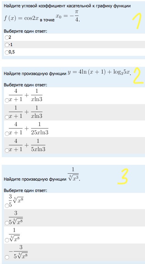 y`=(4*ln(x+1)+log₃(5x))`=4/(x+1)+1/(5x*ln3).