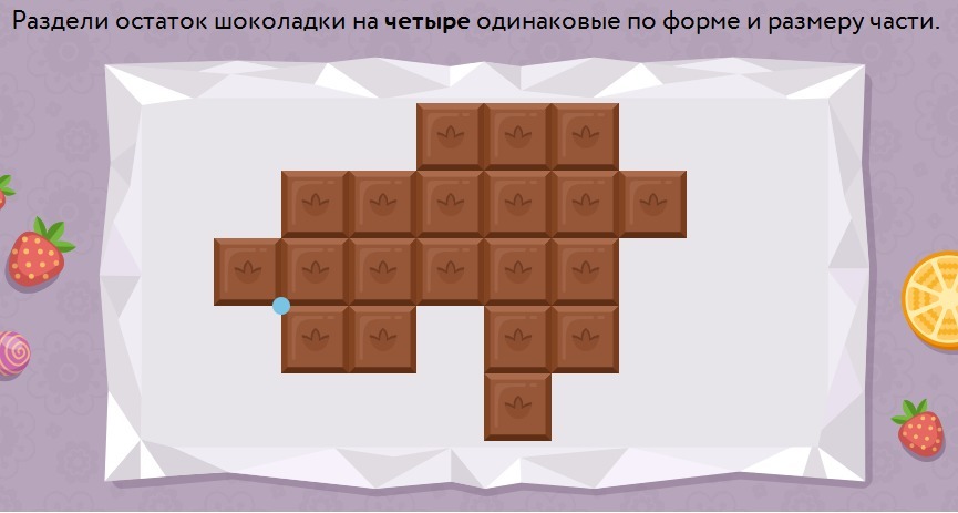 Раздели остаток шоколадки на 4 одинаковые по форме и размеру части