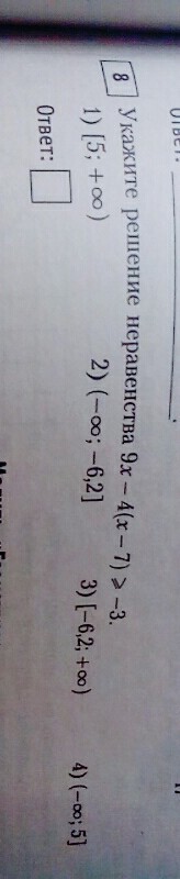 9x-4x+28≥-3 5x≥-3-28 5x≥-31 x≥-31:5 х≥-6,2 отв[-6,2;+∞) 3)