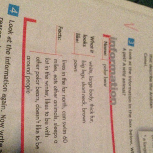 Пожалуйста, помогите с английским. Нужно составить небольшой рассказ о белом медведе, на английском языке. Look at the information in the box below. What kind of animal is this? A pet? A wild animal?