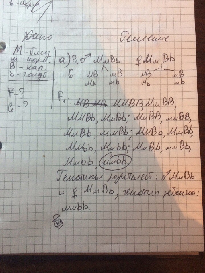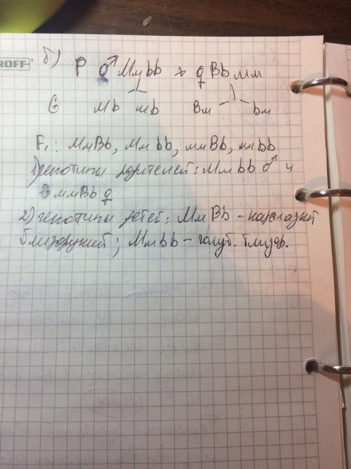 б) голубоглазый близорукий мужчина, мать которого имела нормальное зрение, женился на кареглазой женщине с нормальным зрением, первый ребенок от этого брака кареглазый, близорукий, второй- голубоглазый, близорукий. Определите генотипы родителей и детей.