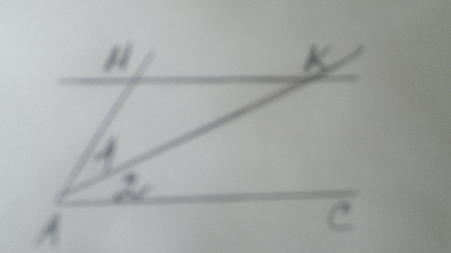 Дано угол 1 равен углу 2, MK параллельно AC . Докажите, что AM= MK