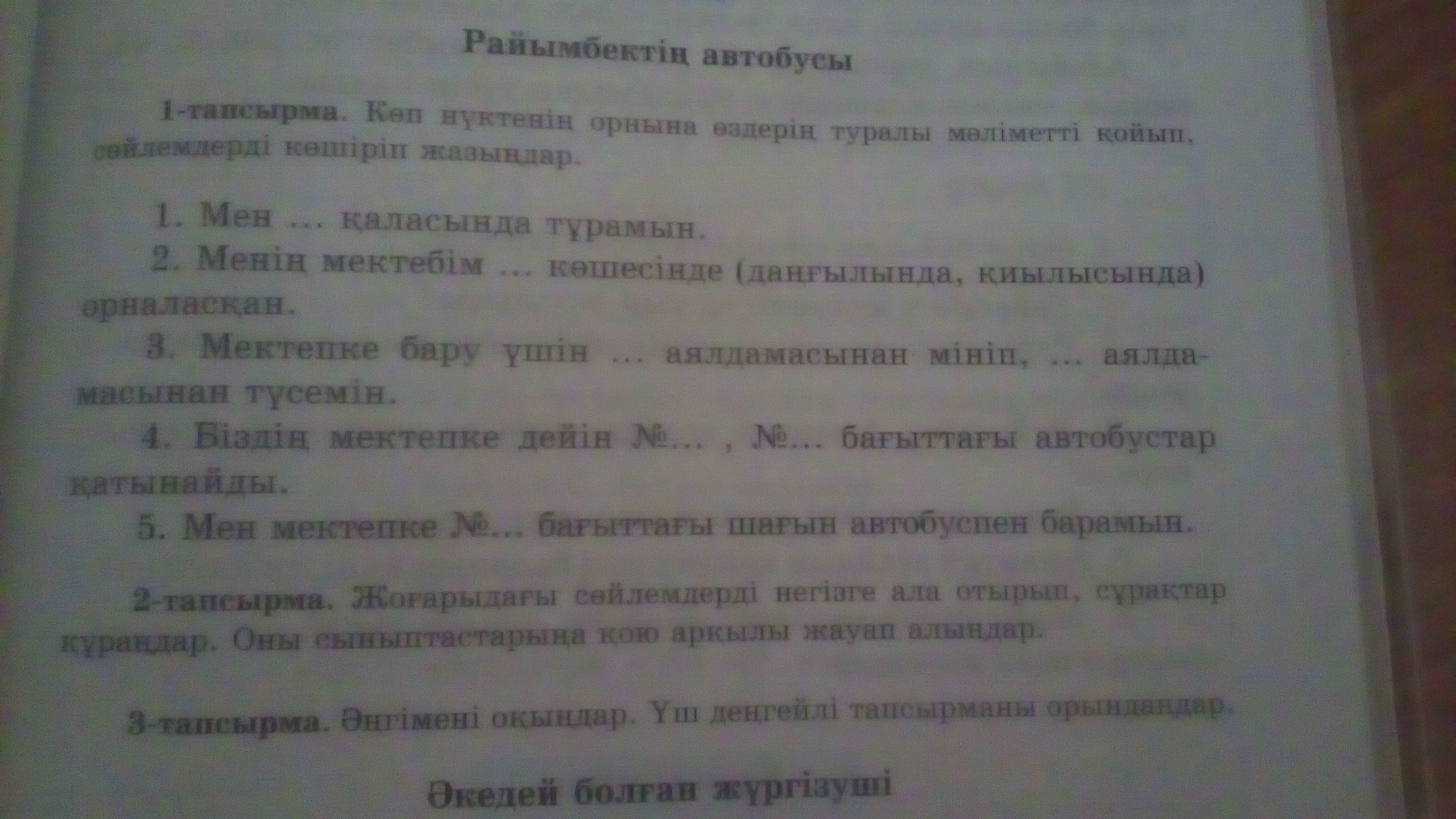 2.Менің мектебім Сатыбалдин көшесінде орналасқан.Пока что только 2