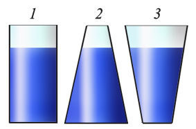 b. давление воды на дно сосуда 1 меньше, чем сосуда 3, поскольку площадь его основания больше