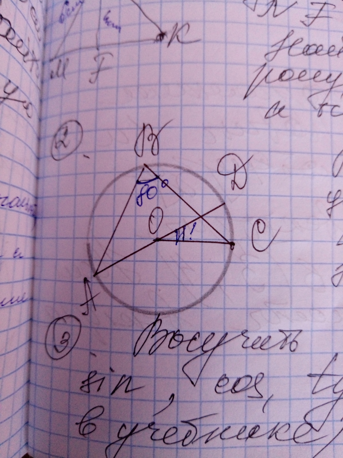 1. Углы АВС с АОС опираются на одну и ту же дугу, при этом угол АВС - вписанный в окружность, а АОС - центральный. Следовательно АОС = 2АВС=160.