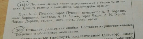 поэтом Пушкиным, городом Пушкин, композитором Бородиным, полем Бородино, писателем Чеховым, городом Чехов, Герценом, Чарльзом Дарвином, стременем, матерью, путём, соседом, временем.