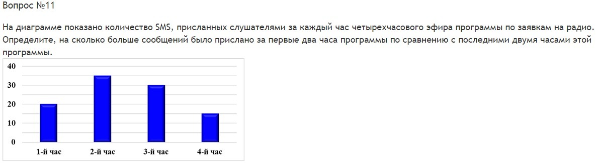 На диаграмме показано кол-во SMS, присланных слушателями за каждый час четырехчасового эфира программы по заявкам на радио...