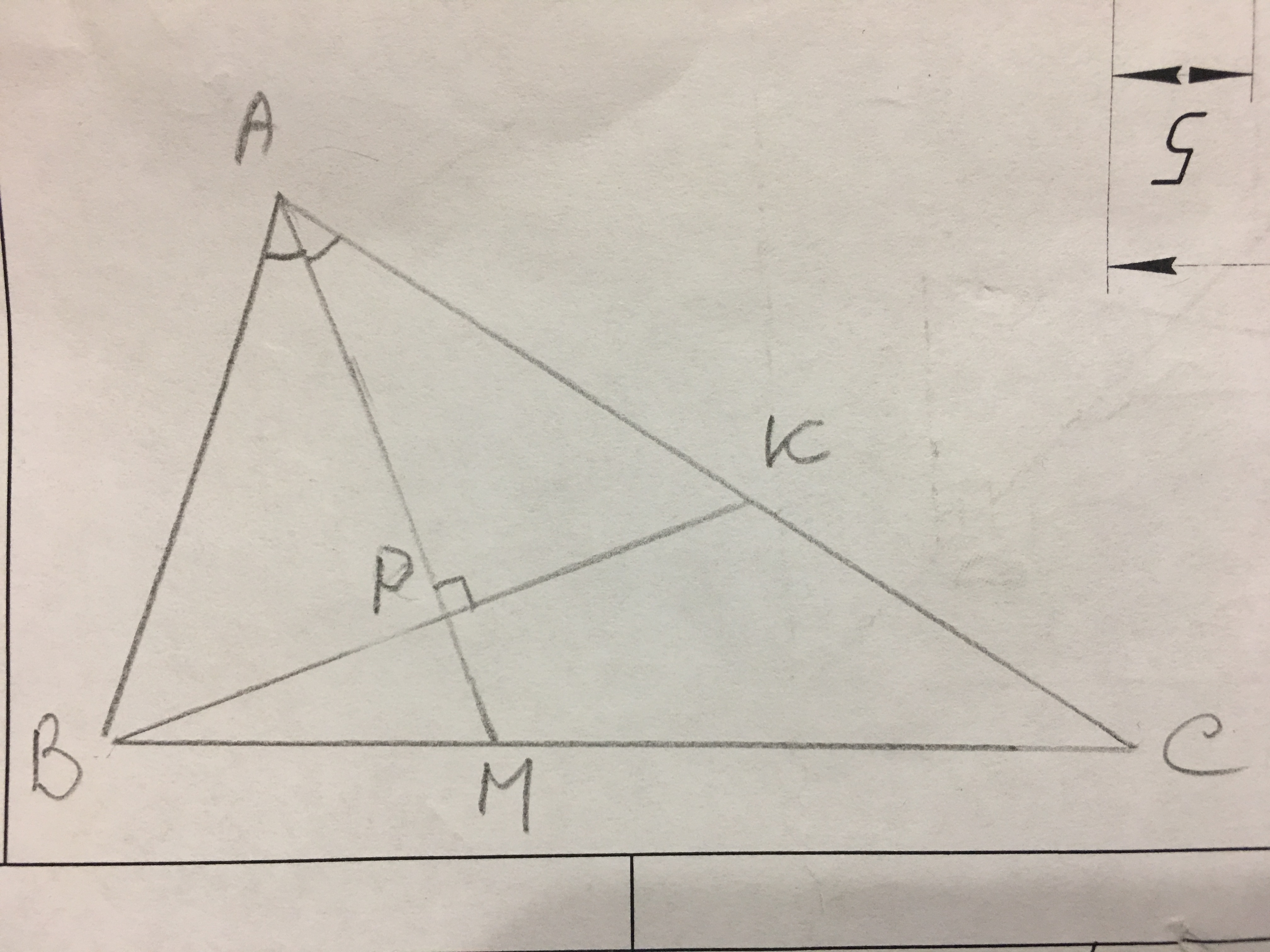 АМ - биссектриса, ВР⊥АМ, ВР=РК, АВ=3 см, АС=5 см.
