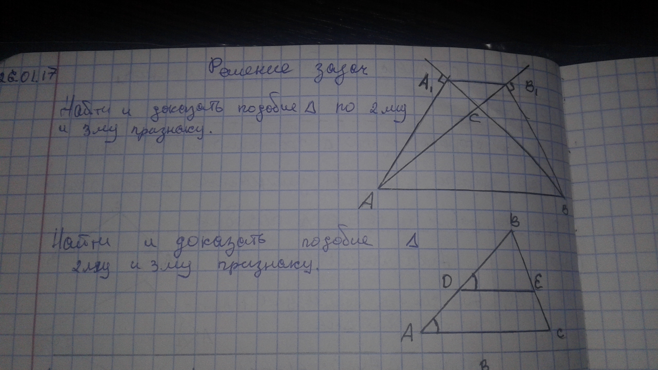 Найти и доказать подобие треугольников по 2му и 3му признаку.