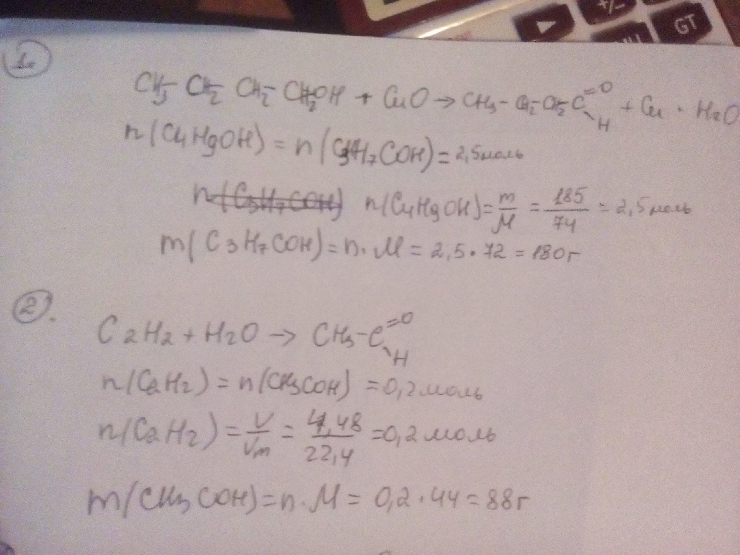1. Рассчитайте массу раствора бутаналя, который можно получить взаимодействием 185 г раствора бутанола-1 с оксидом меди (II).