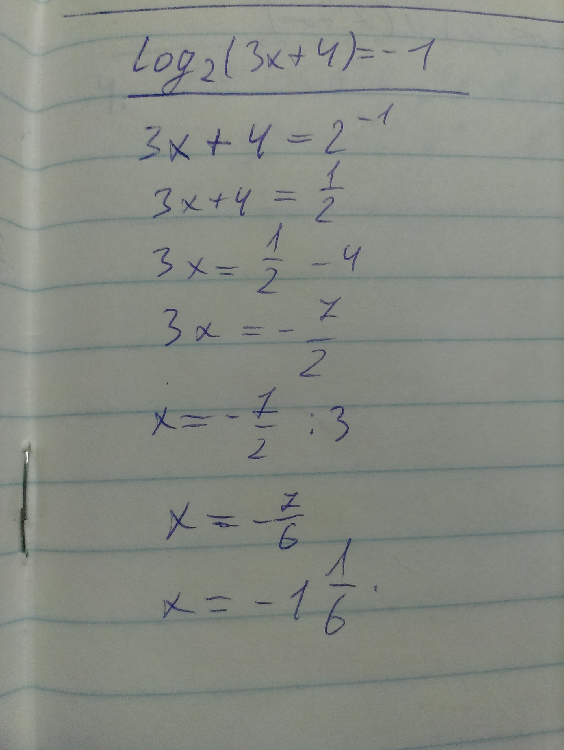 ㏒₂(3*(-7/6)+4)=㏒₂(-7/2+4)=㏒₂(1/2)=-1