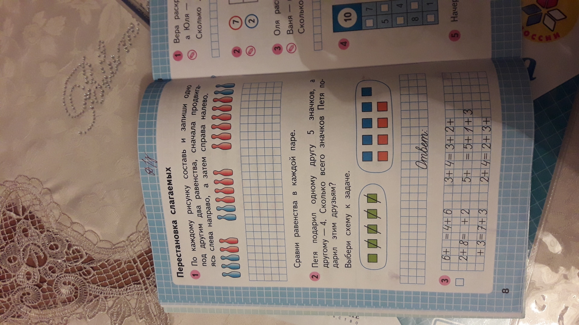 по каждому рисунку составь и запиши одно под другим два равенства сначало продвигаясь слева на право а затем справо налево