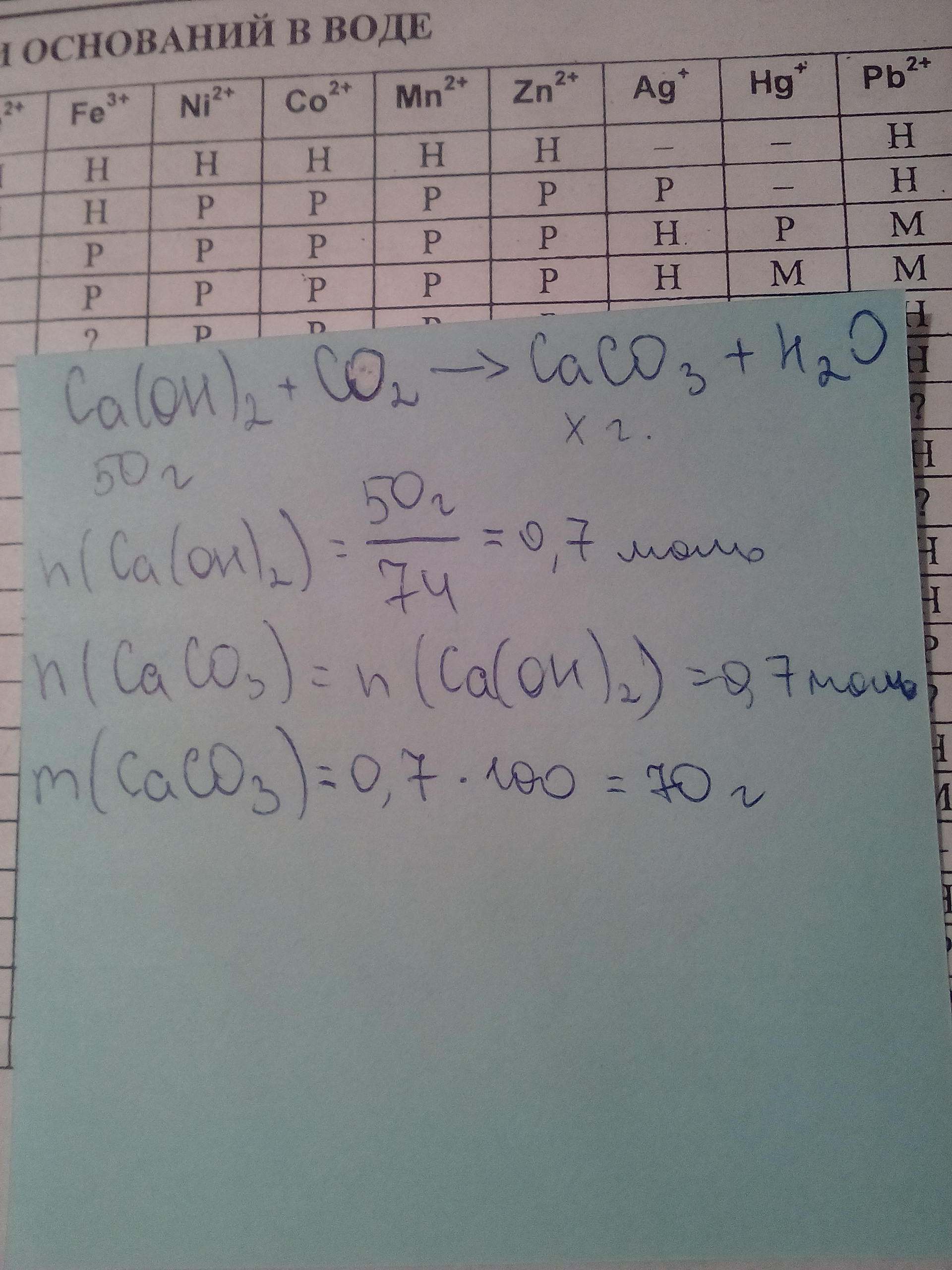 Определить массу карбоната кальция,который образуется в результате взаимодействия 50гр. гидрооксидов кальция и оксид углерода 4.