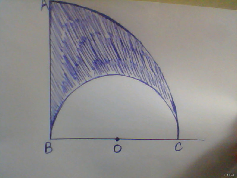 площадь полуокружности с центром в точке О равна 8 пи. найдите площадь заштрихованной фигуры!
