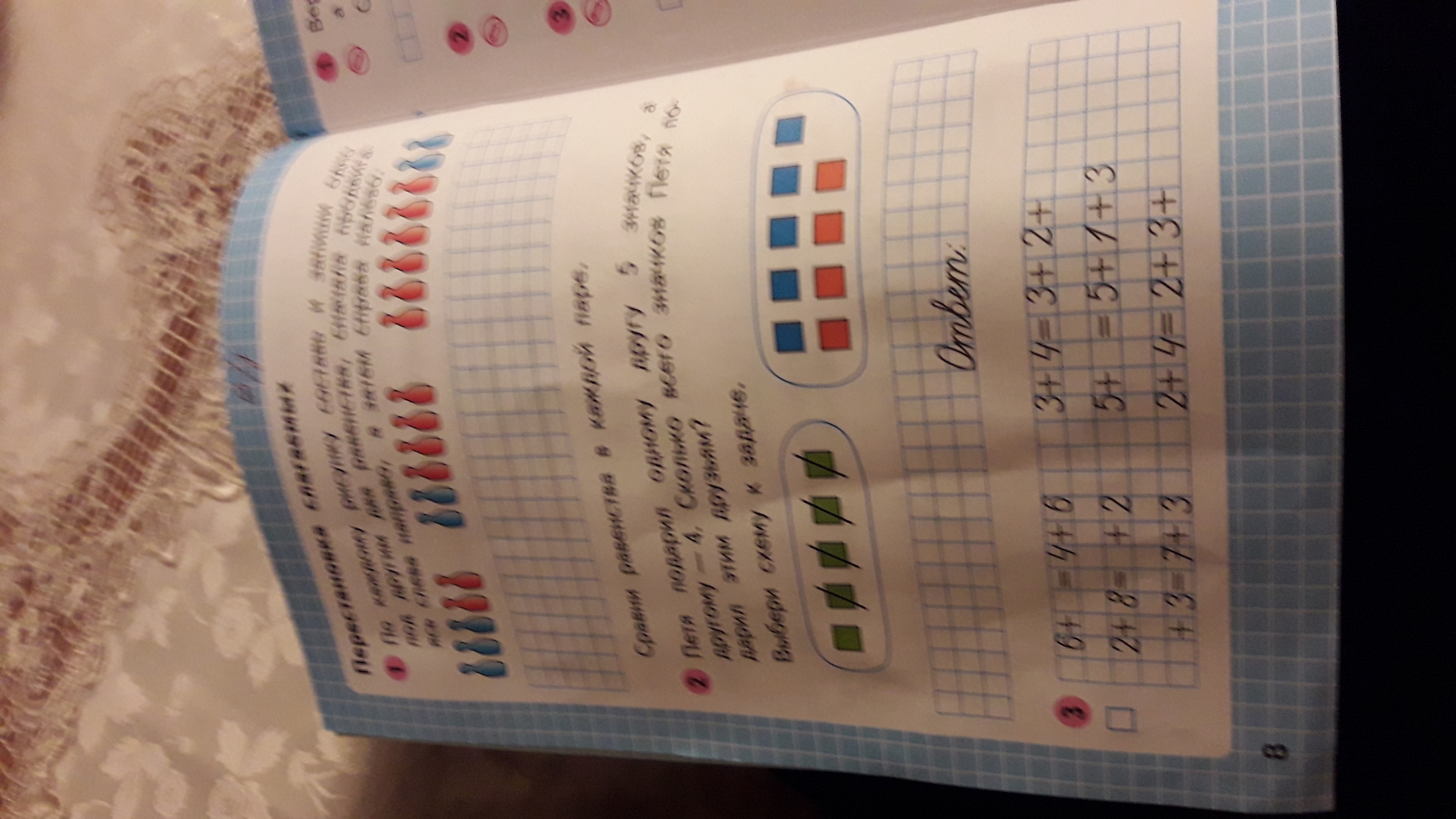 петя подарил одному другу 5 значков,другому 4 .сколько всего значков петя подарил этим друзьям ..выбери схему к задаче