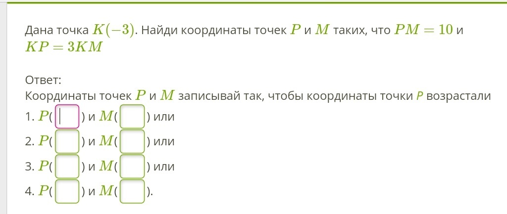 Вариант, что Р ближе к К, чем М, я не рассматривал именно из-за условия КР=3КМ