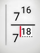 7^16 / 7^18= 1 / 7^2 = 1/49