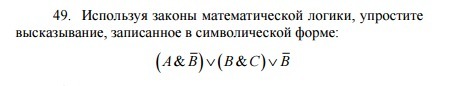 В выражении (B*C)+!B по дистрибутивному закону можно раскрыть скобки. Конечно, можно сразу применить закон свёртки, но он менее известен.