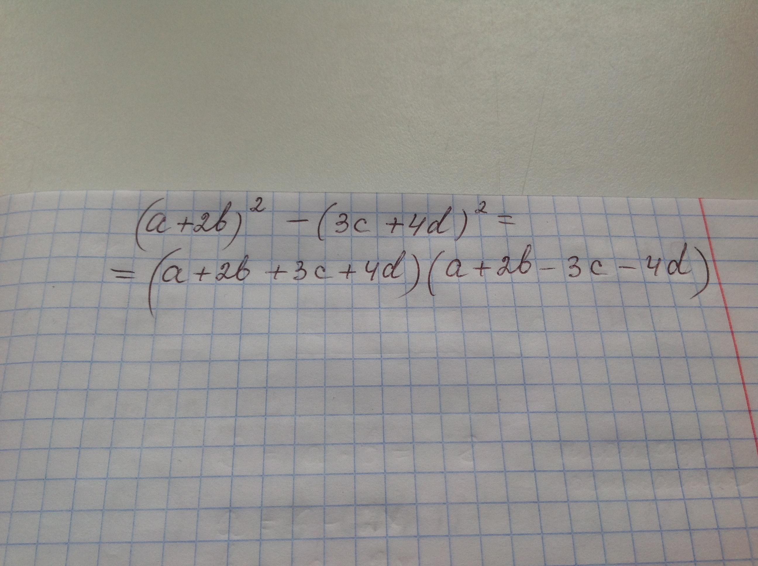 (a+2b)²-(3c+4d)²