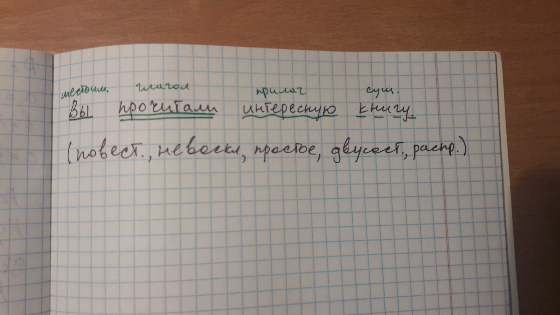 вы-существительное прочитали глагол книгу дополнение выражено сущ. интересную прилагательное