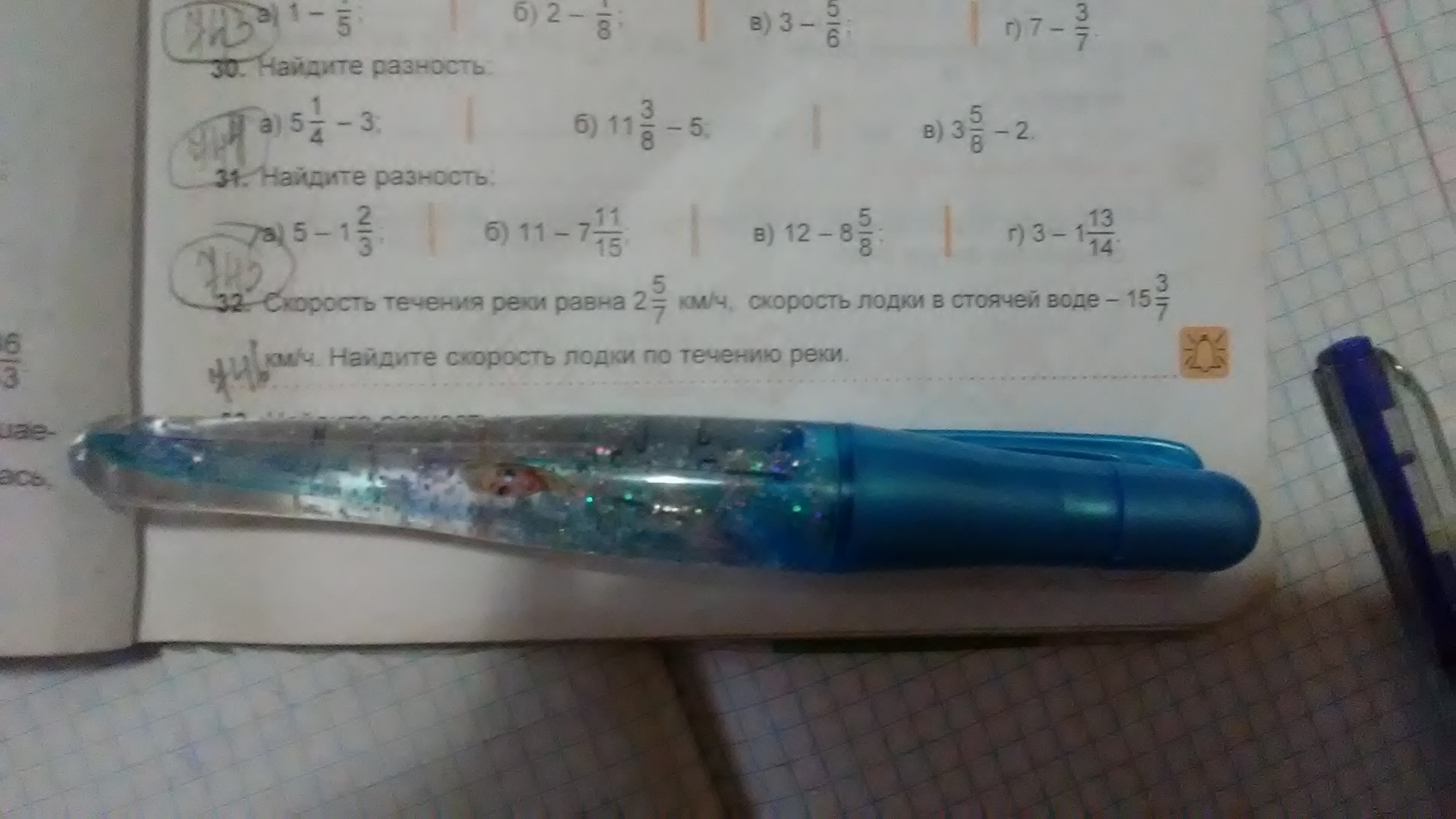 Vпо теч.=15 3/7 + 2 5/7 (в неправильную дробь).