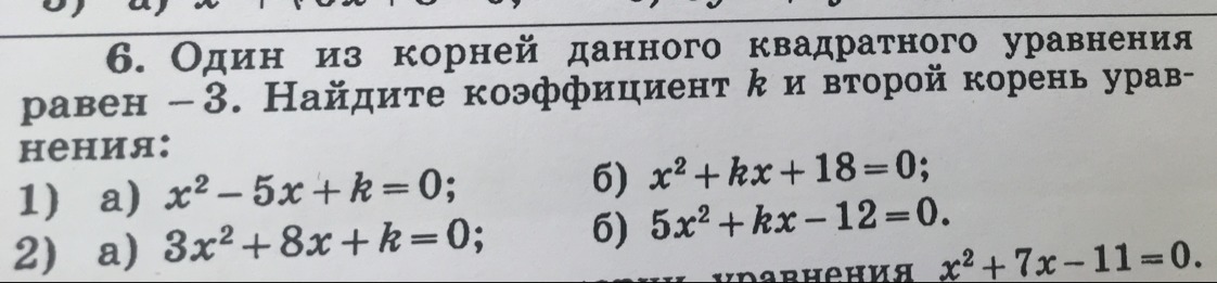 x^2-5x+k=0 (подставляем -3 ,чтобы найти k)