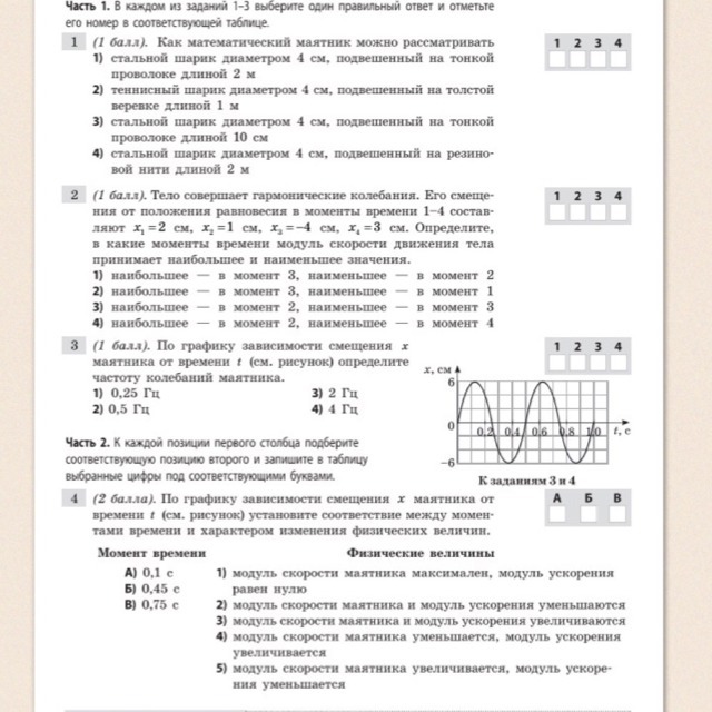 выбранные цифры под соответствующими буквами. По графику зависимости смещения x маятника от А Б В