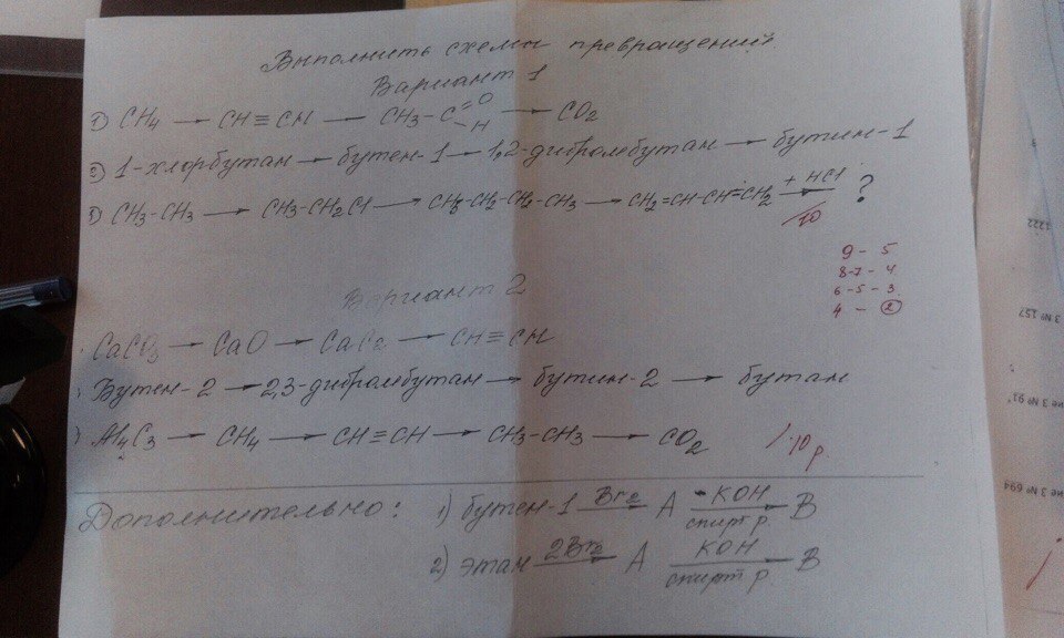 1) CH3-CH=CH-CH3 + Br2 = CH3-CH(Br)-CH(Br)-CH3