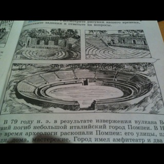 Театры изображены на рисунках номер 1, 2, а на 3 рисунке изображён амфитеатр. На рисунках видны 3 части: скене, места для зрителей и орхестра. ♡