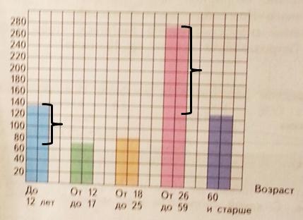 Жильцы от 26 до 59 лет: количество клеток по высоте примерно 13,8, тогда 13,8•20000=276000