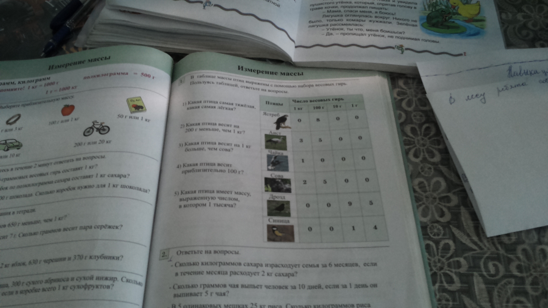 1. Аист - самая тяжёлая, синица - самая лёгкая