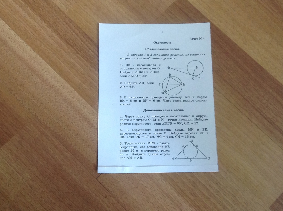 №4 Проводим из центра О перпендикуляры ОМ и ОН в точки касания, проводим линию СО - биссектриса угла МСН, угол ОСМ=уголОСН=60/2=30, треугольник ОМС прямоугольный ОМ=радиус = СМ х tg30 = 12 х 1/корень3 = 4 х корень3