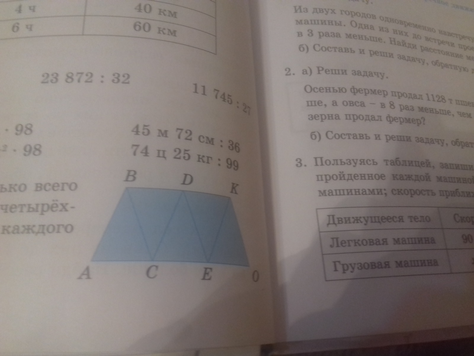 Расмотри рисунок. Сколько всего триугольников? Сколько всего четырехугольников? Запиши название каждого из них.