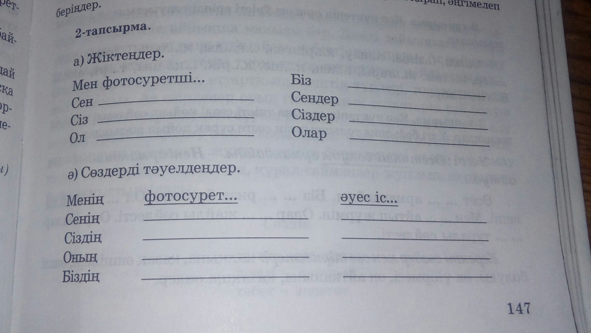 А) сен фотосуретші,сіз фотосуретшісіз,ол фотосуретші