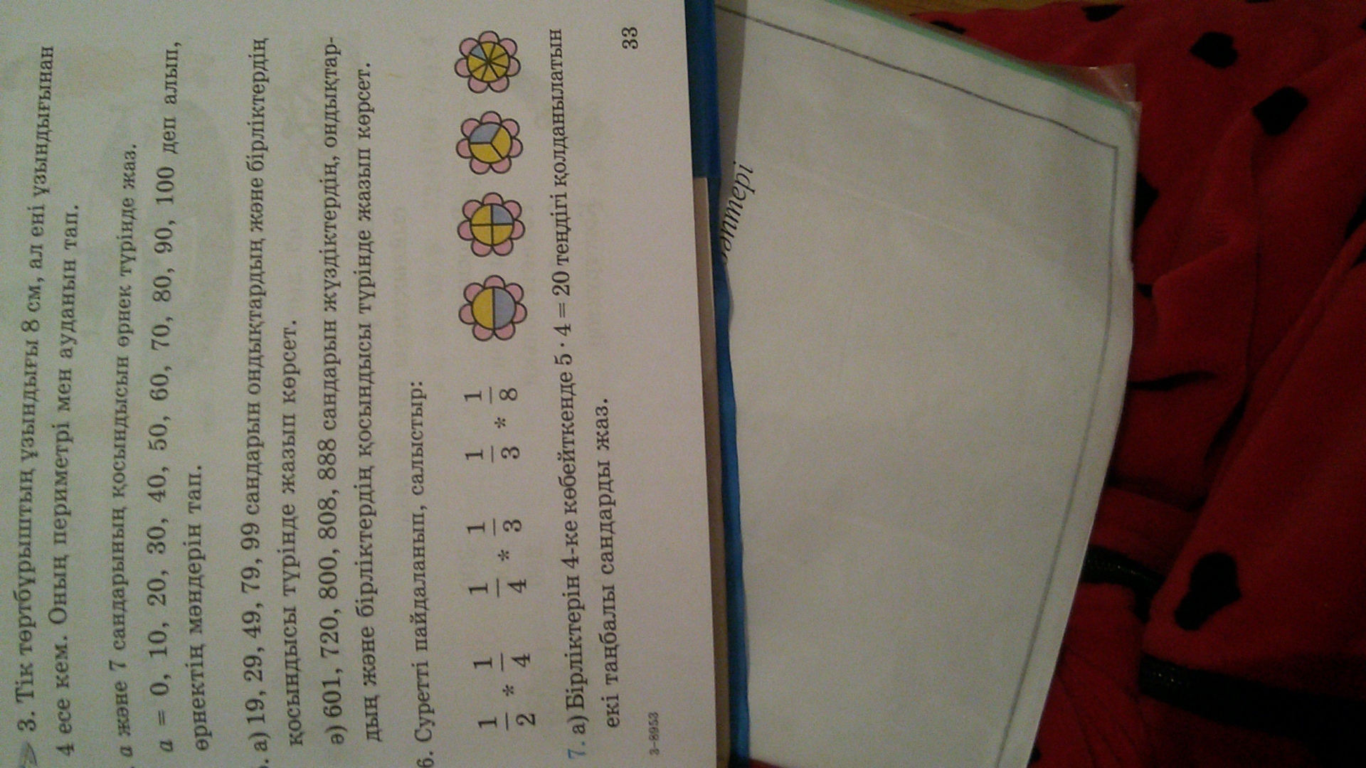бирликтерін 4-ке кобейткенде 5×4=20 тендігі колданылатын екі танбалы сандарды жаз