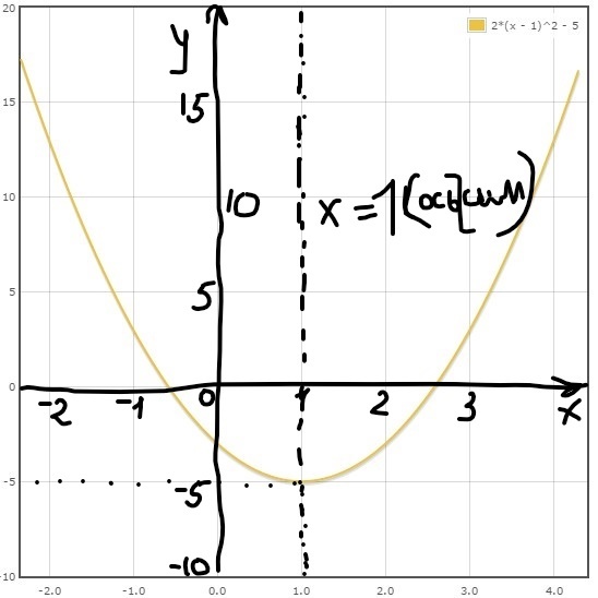 1)Постройте график функции у=2(х-1)²-5 Напишите уравнение оси симметрии построенного графика.ПРОШУ