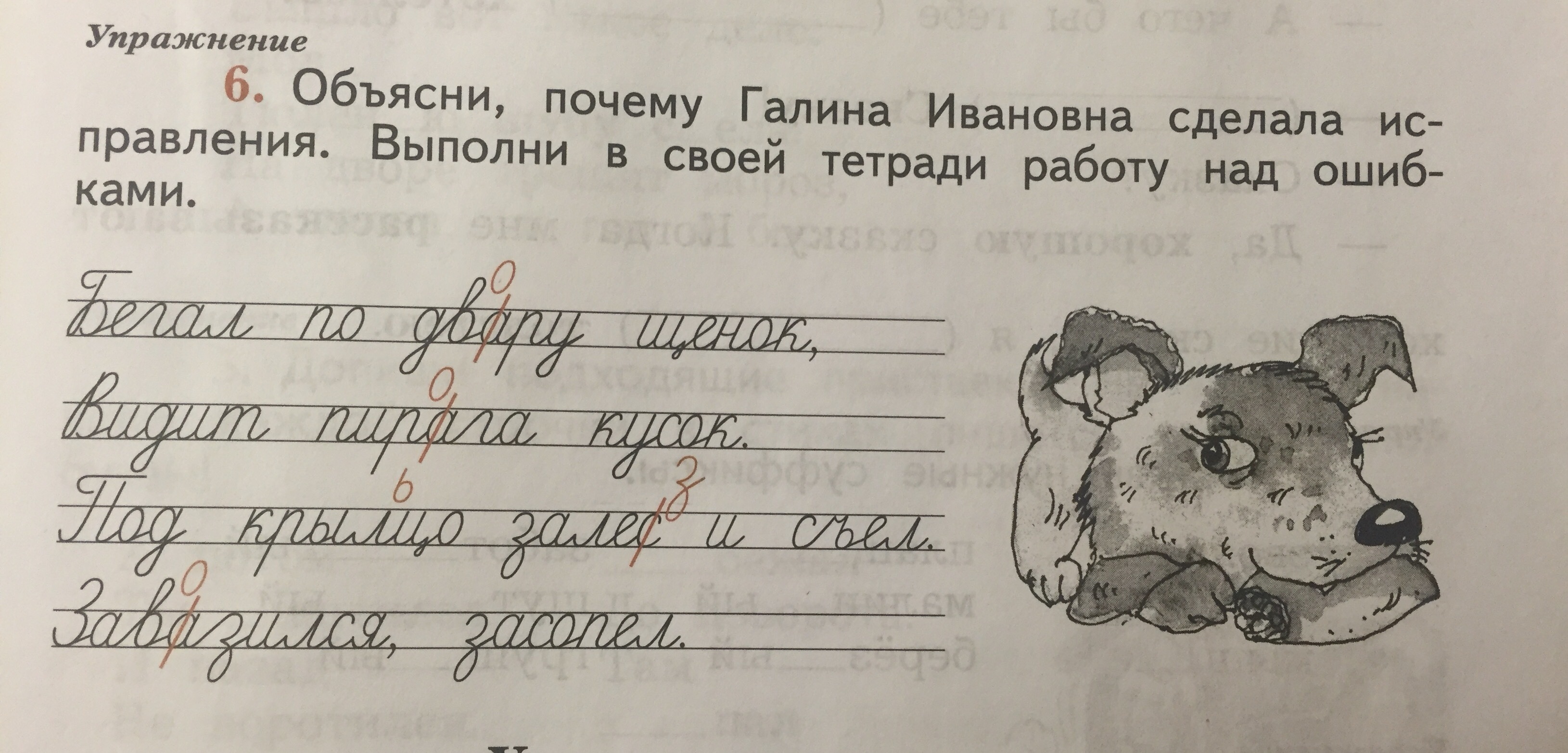Объясни почему Галина Ивановна сделала исправления . Выполни в своей тетради работу над ошибками.