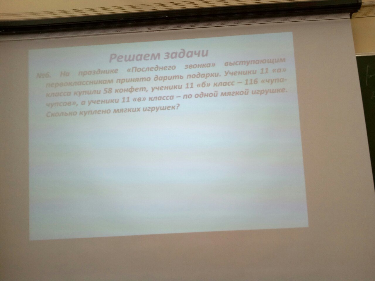 58 конфет но в классе не может быть 58 учеников значит поделим 58/2 получается 29 учеников. 11 Б купил 116 чупа-чупсов то есть по 4 чупа-чупса на ученика, всего учеников 29. А значит 29 игрушек