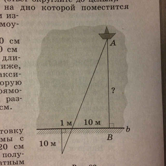 Используя данные, приведенные на рисунке, найдите расстояние AB от лодки A до берега b.