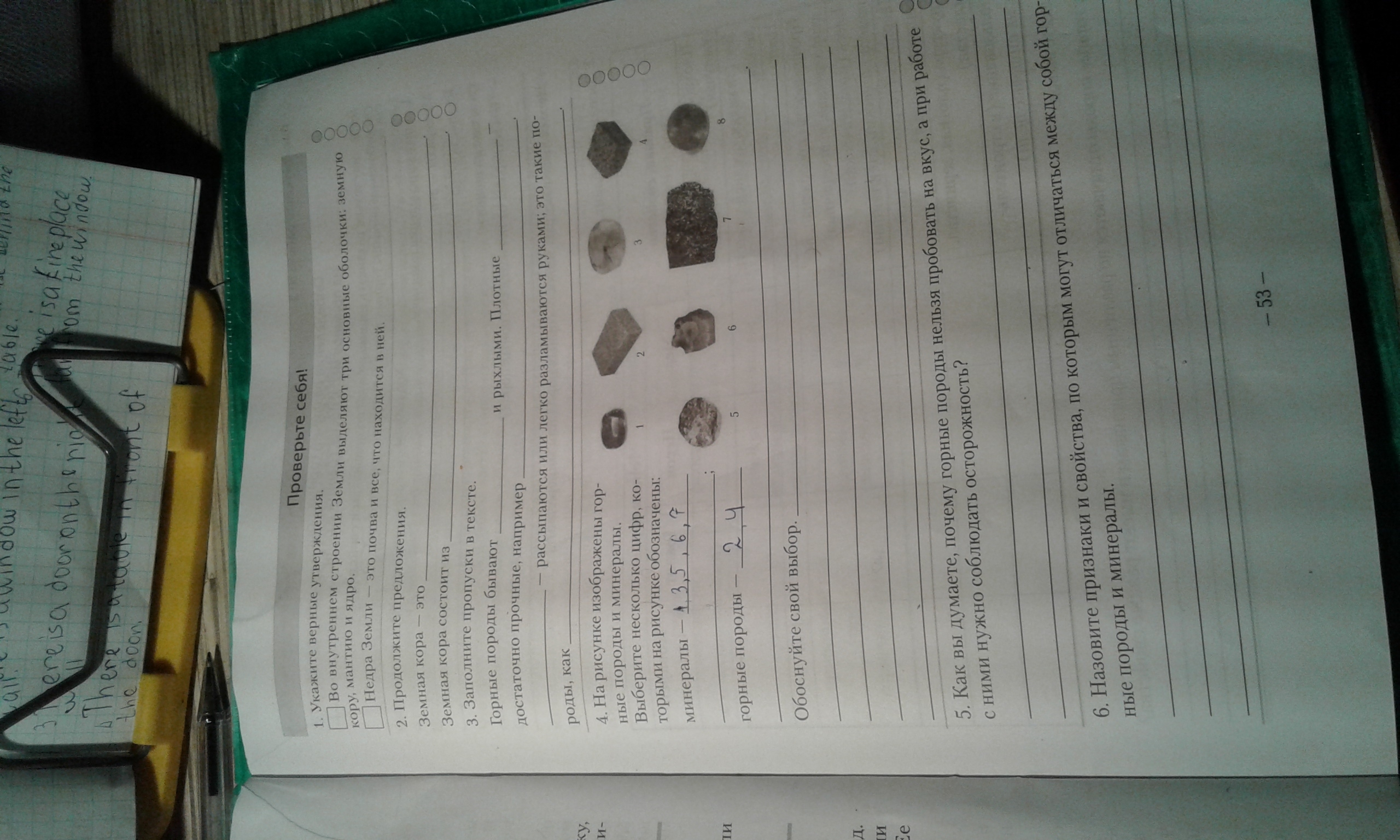 5) Потому что горную породу нельзя попробовать на вкус, а когда работаешь с горными породами надо соблюдать осторожность потому что горные породы они очень крупкие поэтому с ними надо обращатся очент осторожно
