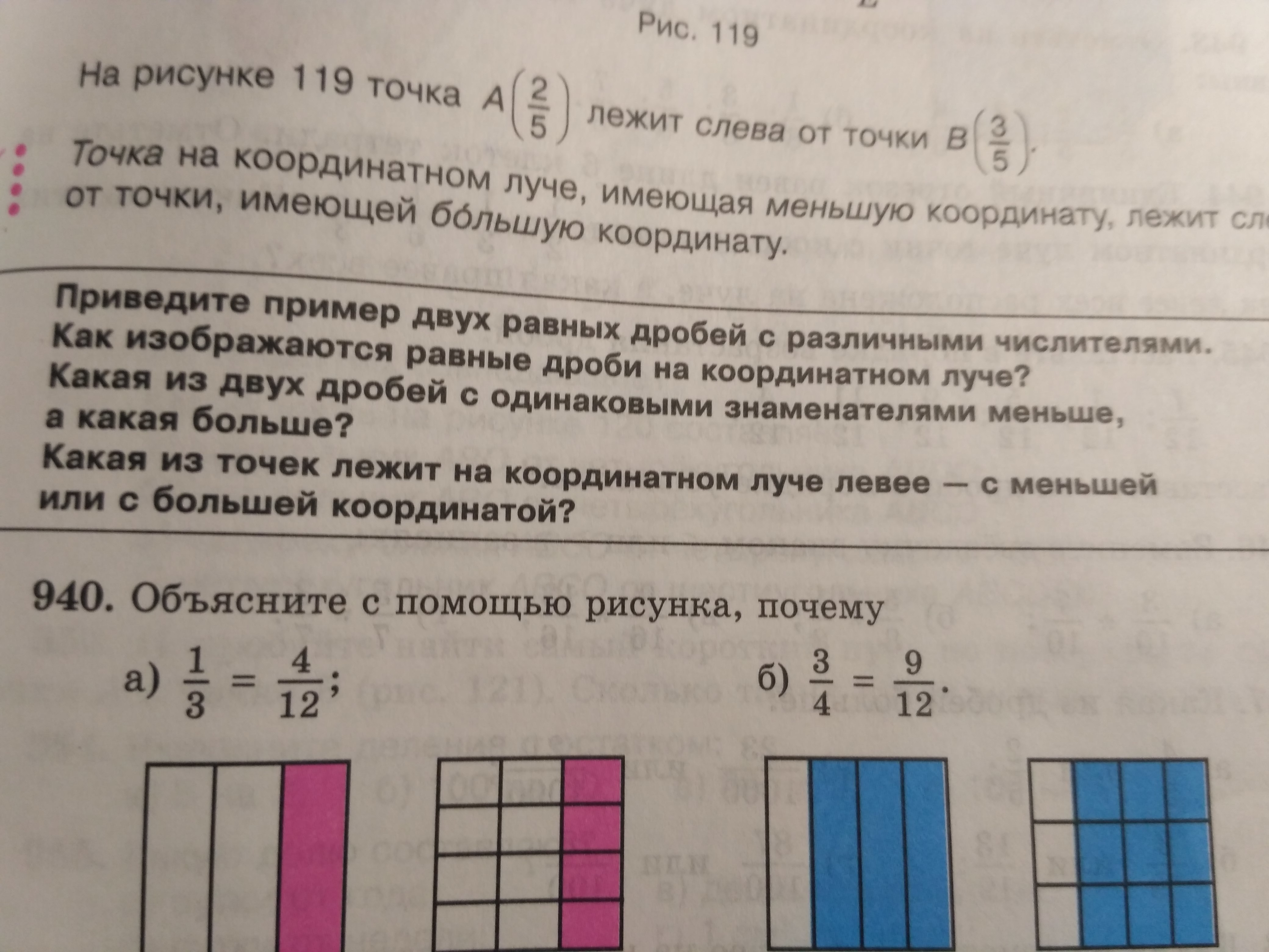 2)равные дроби на координатном луче изоброжаются одной и тойже точкой
