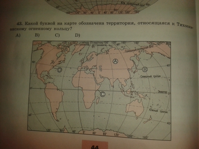 Какой буквой на карте обозначена территория относящаясь к Тихоокеанскому огненому кольцу?