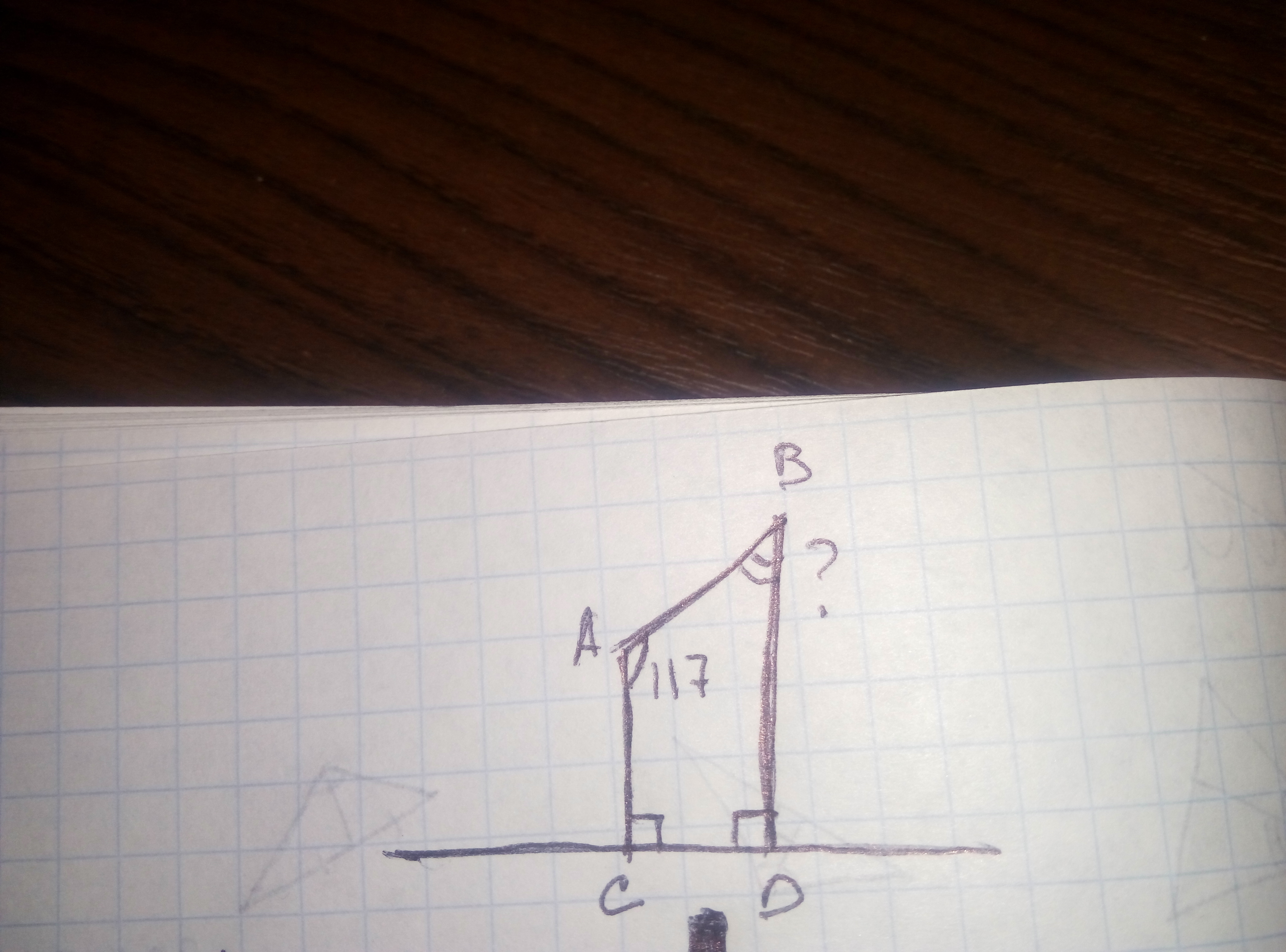 думаю это не обязательно, однако, продлив линию вершины (АВ) и получив точку пересечения К мы можем посчитать угол треугольника КВD 180-90-63=27°, это ещё одно докозательство того, что есть точка пересечения(в данном случае точка К). Если будешь писать прт продление прямой, то на 2 фото чертёж(там, где есть ещё и точка К)