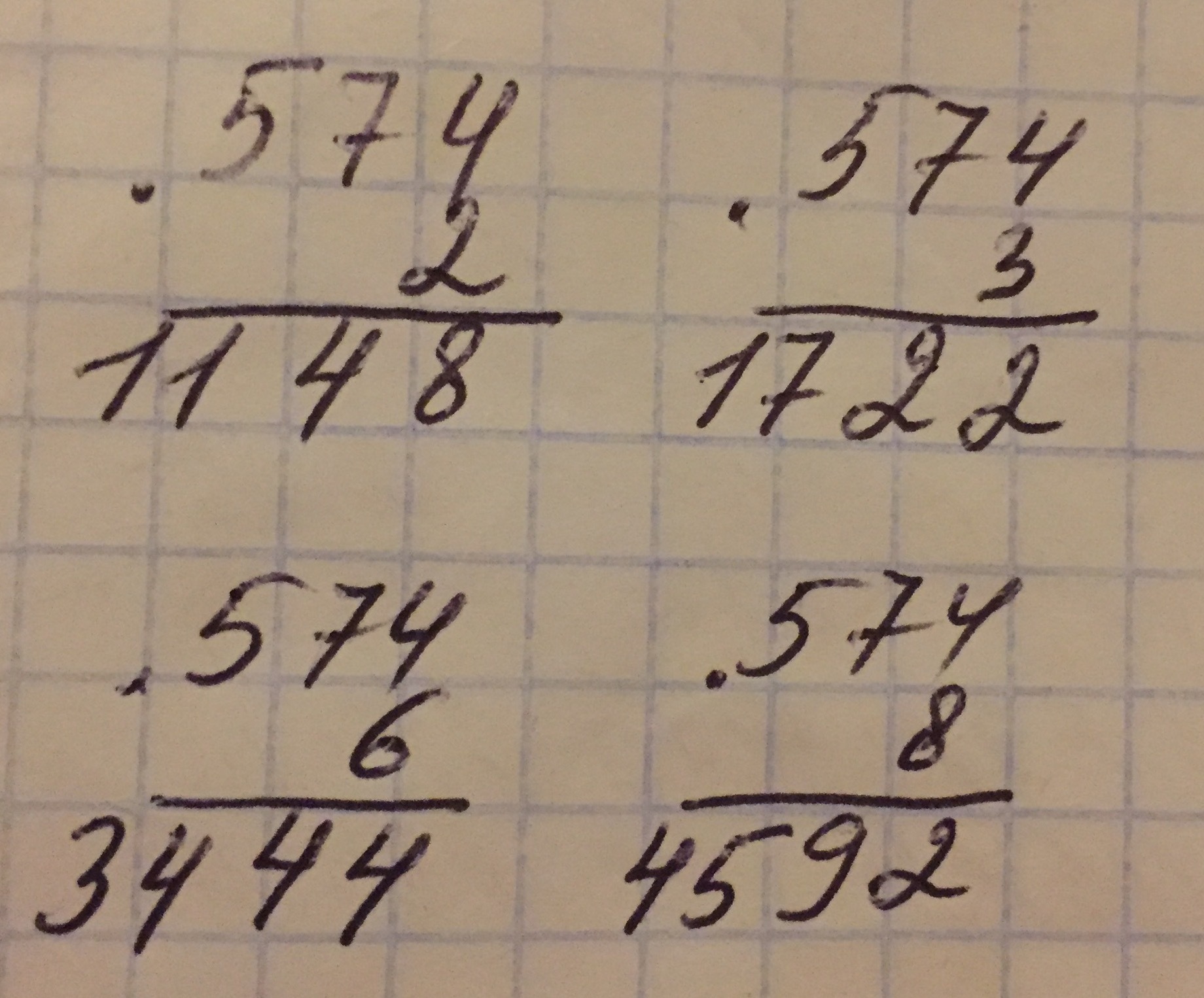 Письменное оешение на фото внизу. Ответ: 1148, 1722, 3444, 4592