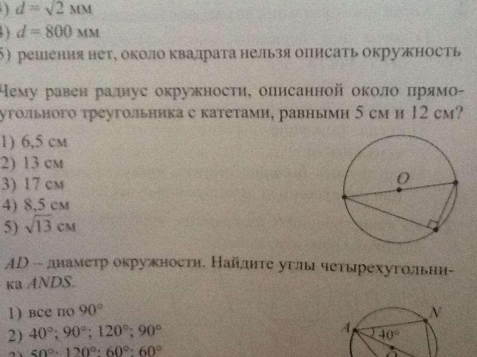 Чему равен радиус окружности описанной около прямоугольного треугольника с катетами,равными 5 см и 12 см
