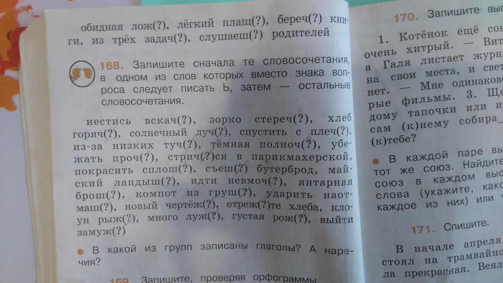 Нестись вскачь, зорко стеречь, тёмная полночь, убежать прочь, стричься, покраситься всплошь, съешь бутерброд, идти невмочь, янтарная брошь, наотмашь, отрежьте хлеб, густая рожь