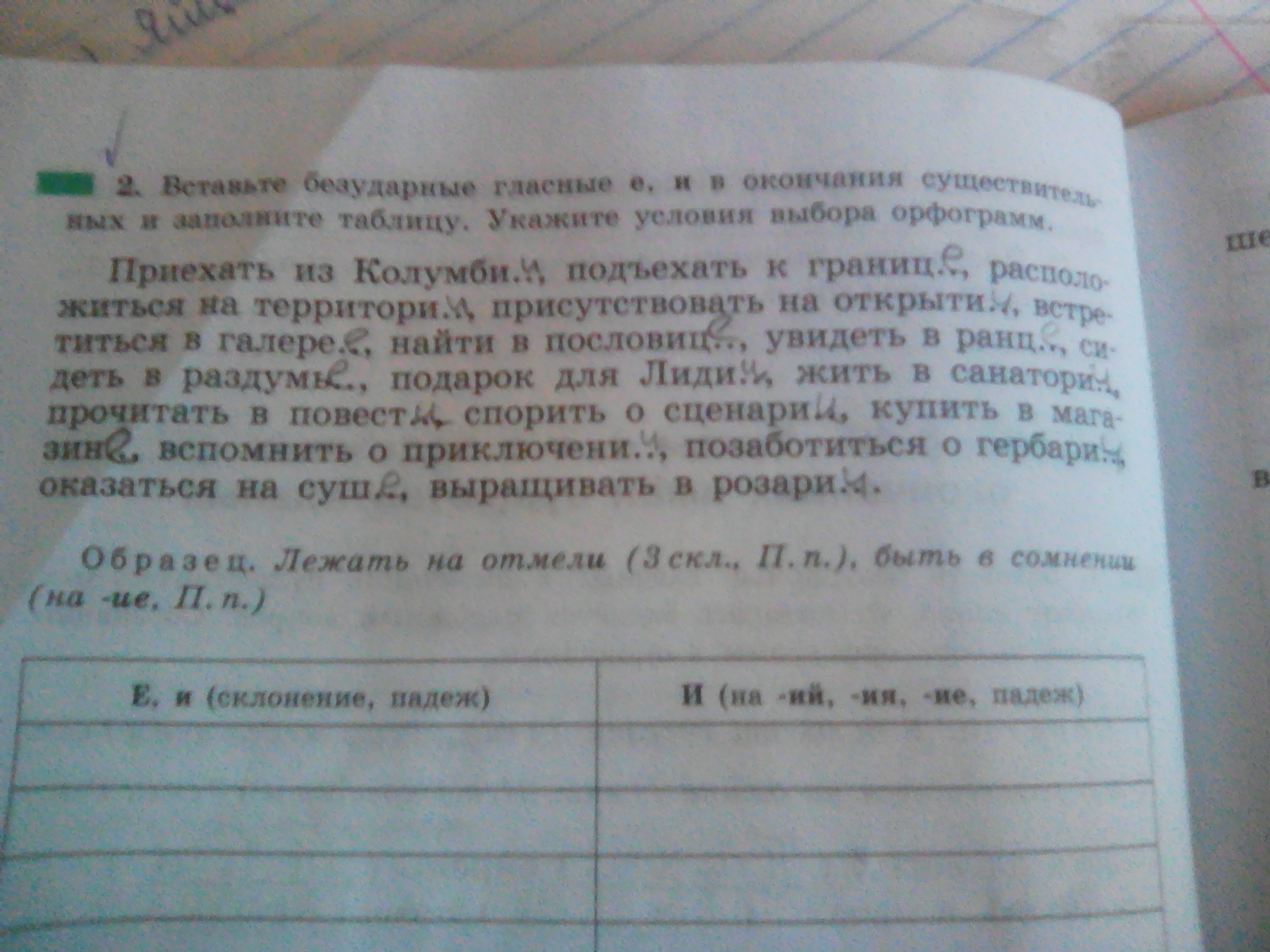 Первый столбик - границе, галерее, пословице, ранце, повести, магазине, суше