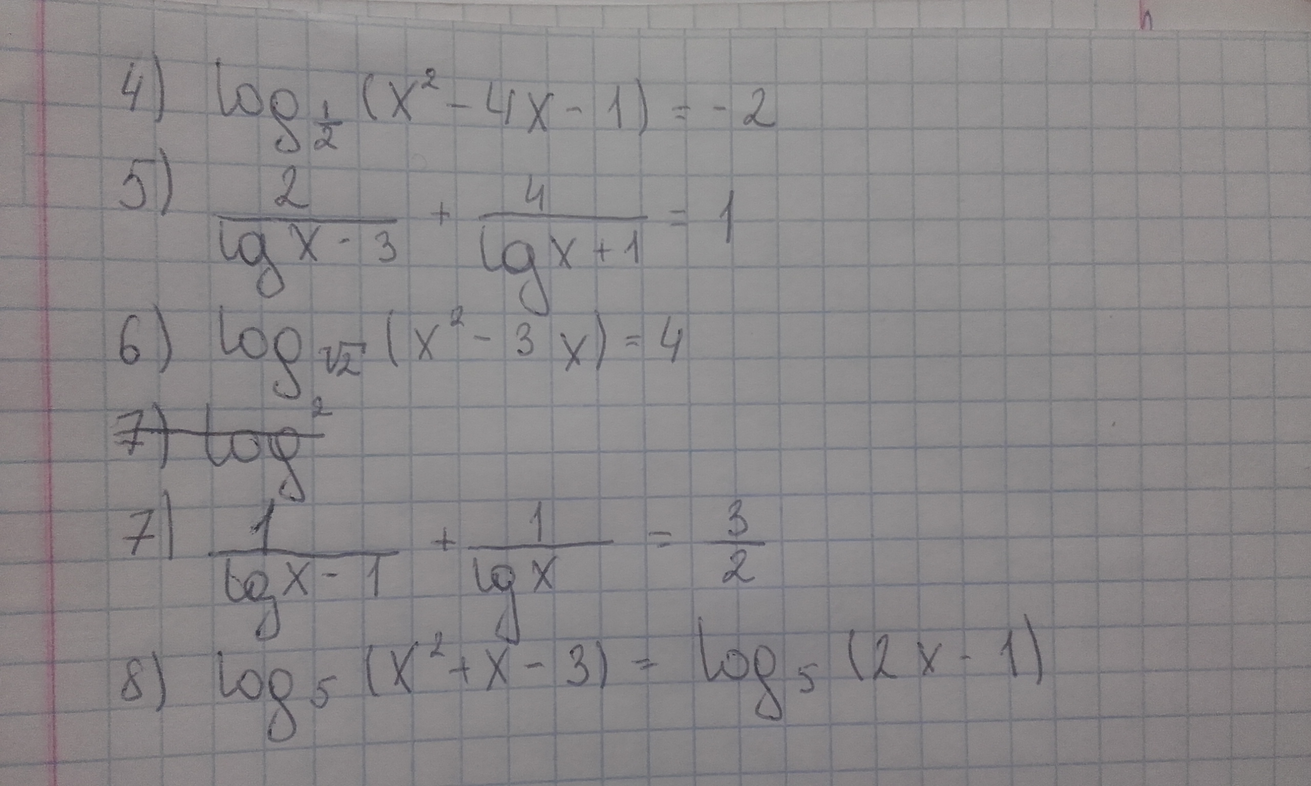 Поогите с логарифмическими уравнениями, пожалуйста. Эти несколько примеров мне никак не даются. Заранее спасибо.